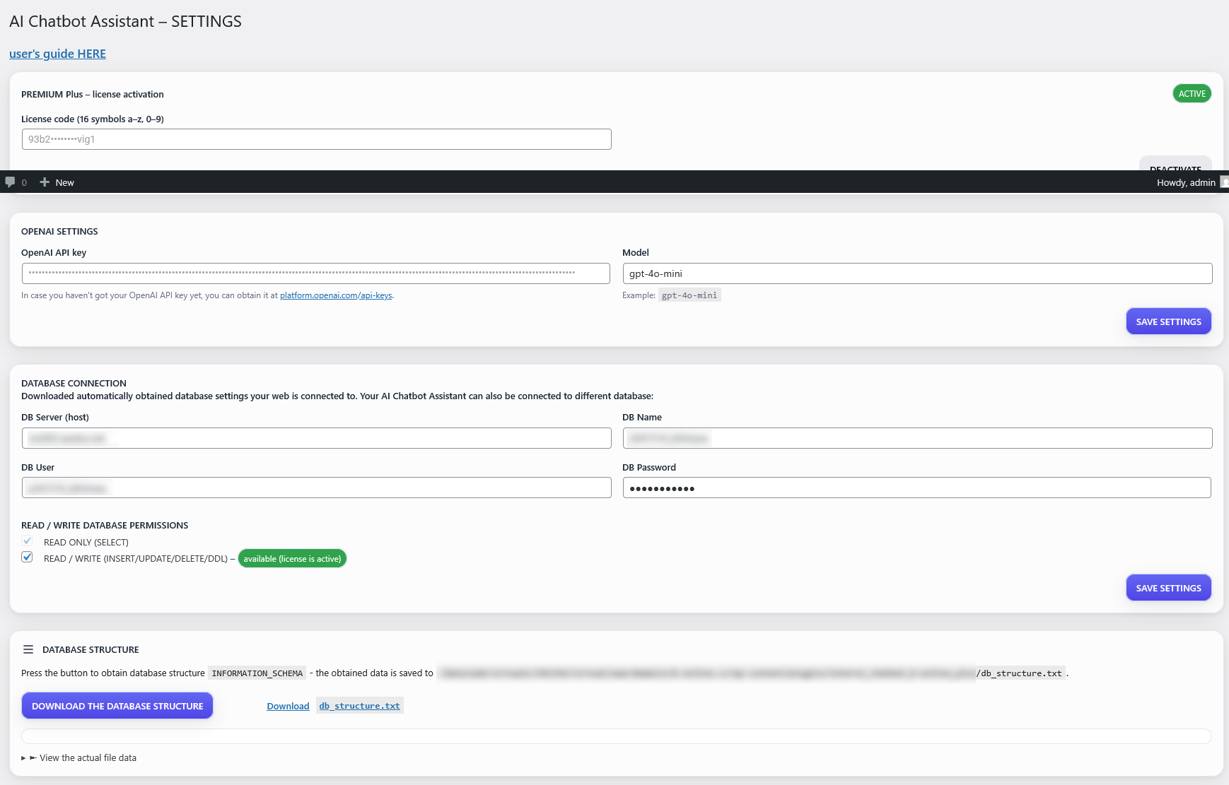 > In the WordPress admin, click AI Chatbot → Settings and enter your license key and other details